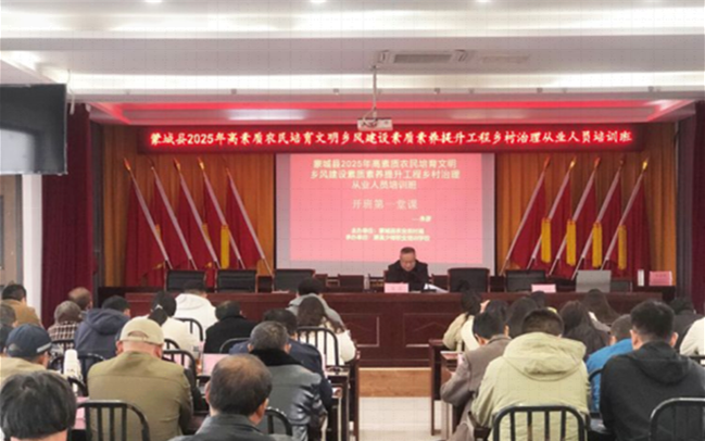 11月8日上午,由蒙城县农业农村局主办,濉溪少峰职业培训学校承办的2025年高素质农民培育乡村治理培育班在蒙城县立仓镇开班。来自立仓镇各行政村管理服务人员和村后备干部等55学员参加培训。县农业农村局、县农广校、立仓镇相关负责人出席开班仪式。