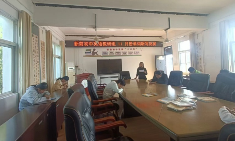 为激发学生学习英语的热情,夯实词汇基础,提升语言综合运用能力,新前初中于2025年11月14日中午在二楼会议室举行了以“拼写达人,词海争锋”为主题的初中英语单词听写大赛。本次活动由校英语教研组策划,七、八年级学生代表及英语教师共同参与,现场气氛热烈,亮点纷呈。