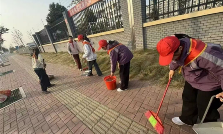 社会实践劳动是劳动教育的课堂。学校制定了社会实践劳动计划,定期由我校党员教师引领学生在校园周边进行社会实践劳动。
