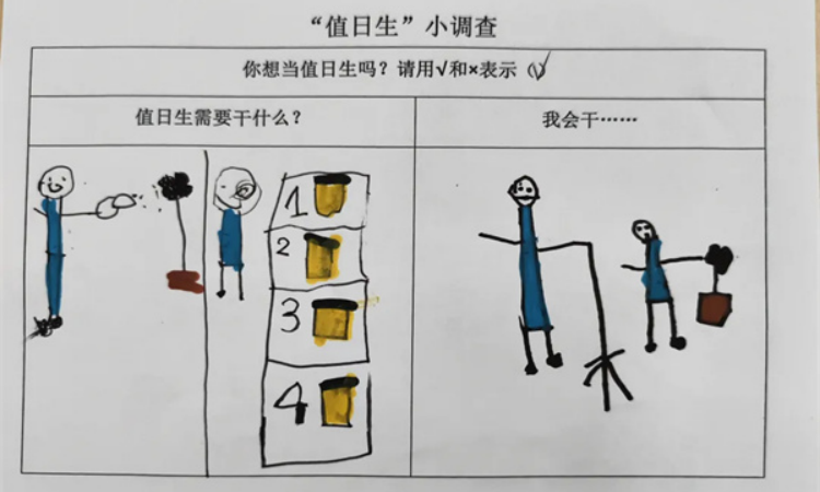 随着中班幼儿自我意识和认知能力的不断发展,常能听到他们自信的声音:“我会做”、“让我来”、“我帮你”,他们总是积极主动地想当小老师,乐于帮助收拾、整理东西。以此为契机,班级开始引发孩子们关于“小小值日生”的讨论!