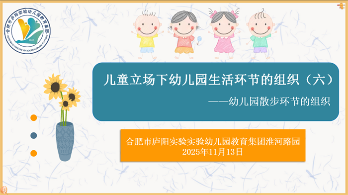 餐后散步,是幼儿园一日生活中最惬意、自然、宽松的活动。为提升教师活动的设计实施能力与教育价值挖掘水平,发挥餐后散步活动对幼儿健康成长的赋能作用。2025年11月13日,合肥庐阳实验幼儿园教育集团淮河路园开展“儿童立场下幼儿园生活环节的组织(六)——幼儿园散步环节的组织”专题教研活动。