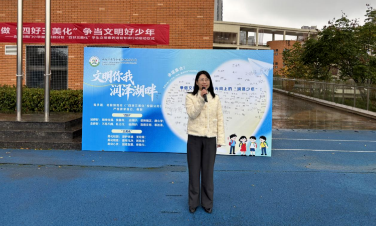 为全面落实立德树人根本任务,积极响应庐阳区教育体育局《关于开展“四好三美化”学生文明素养培育专项行动》的号召,2025年11月17日上午,合肥市南门小学湖畔花园分校举行了“学做‘四好三美化’,争当文明好少年”主题升旗仪式暨“四好三美化”学生文明素养培育专项行动启动仪式。