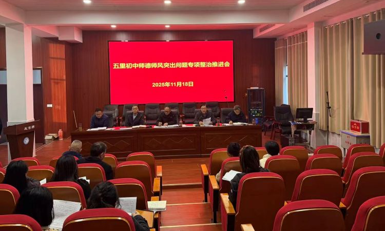 为了进一步加强师德师风建设,11月18日,五里初中召开了师德师风突出问题专项整治推进会,全体教师参会。