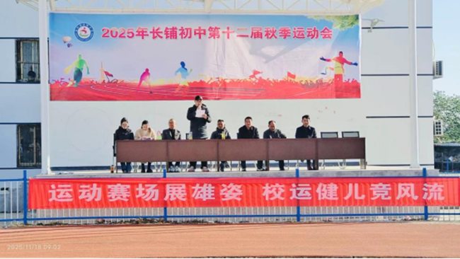 秋光潋艳,青春激扬。11月18日,宿松县长铺初中第十二届秋季运动会在全校师生的热切期盼中隆重开幕。副校长周轴致开幕词。