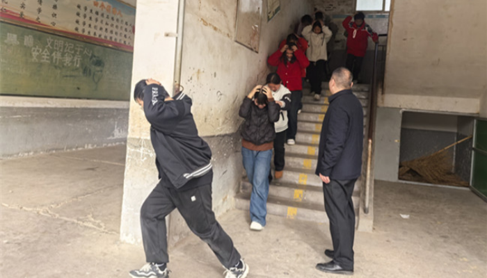 10时40分,随着校园广播系统发出急促的警报声,演练正式开始,班主任迅速指挥学生采取恰当的避险措施,学生们迅速蹲下,躲在课桌下,用课本或双手护住头部,蜷曲身体、降低重心。约1分钟后,广播系统发布疏散指令,各班学生在教师的带领下,按照预定路线有序撤离。负责疏散引导的教师在楼梯转角、安全出口等关键位置值守,确保疏散秩序井然。10时44分,全校师生安全撤离至学校指定避险区域。经统计,全校师生均按预定时间完成疏散,无人员滞留或受伤情况。