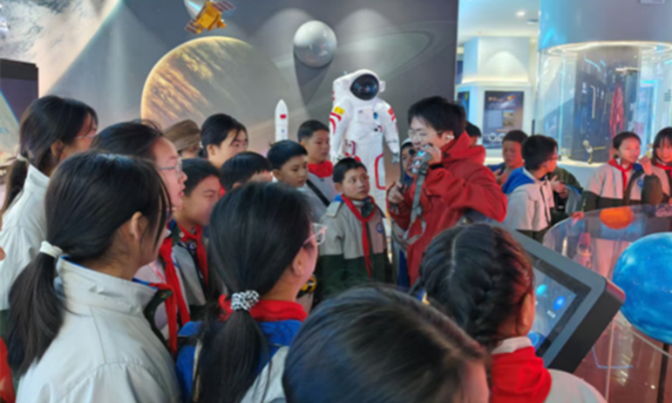 天文馆探秘,仰望星空的梦想。在科技博物馆的宇宙展厅,同学们被红色的星际主题空间所吸引。讲解员身着醒目红色外套,手持麦克风为学生们详细解说宇宙的奥秘。展厅内,行星模型、运载火箭和宇航服等展品令人目不暇接。学生们围在讲解员周围,专注聆听,不时发出惊叹之声。“原来土星有这么美丽的光环!”一名学生兴奋地表示,这次参观让他对宇宙有了更直观的认识。大型宇宙壁画和天花板上的投影设备营造出沉浸式的太空体验,仿佛将学生们带入了遥远的星际空间。
