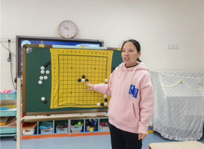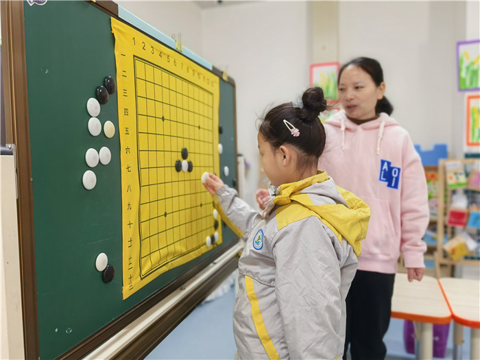 为增强家园共育合力,2025年11月18日,合肥市庐阳实验幼儿园教育集团淮河路园大班邀请了刘亦凡小朋友的妈妈走进班级,带来了一场别开生面的围棋启蒙课,发现黑白棋子的奇妙,体验对弈的乐趣。