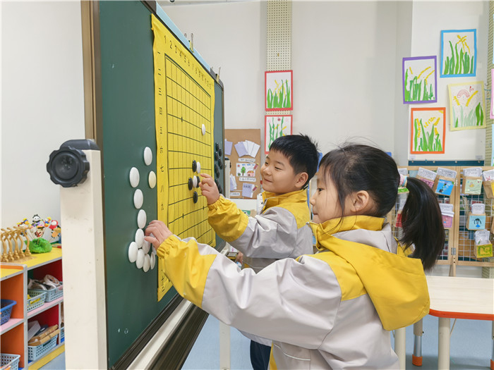 最让孩子们兴奋的实践环节终于到来。孩子们在棋盘上摆开了阵势,尝试下棋、吃棋。教室里顿时化身为一个微型的围棋赛场。看,他们时而蹙眉思考,时而因一步好棋而喜笑颜开,那专注的模样,真像一个个小小的围棋大师!