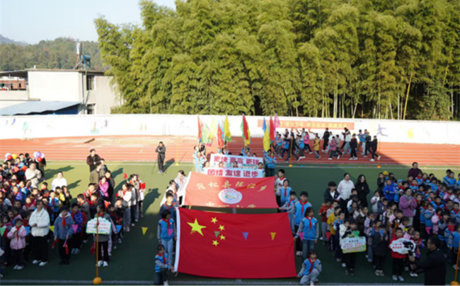 开幕式上各代表队方阵迈着整齐有力的步伐依次入场。他们口号响亮,步伐坚定,稚嫩的脸庞上展现的是青春朝气;他们高举班牌,斗志昂扬,体现的是班级特色与团队力量。在热烈的掌声中该校党支部书记、校长曹大成宣布运动会开幕。比赛正式开始,操场上瞬间沸腾起来。
