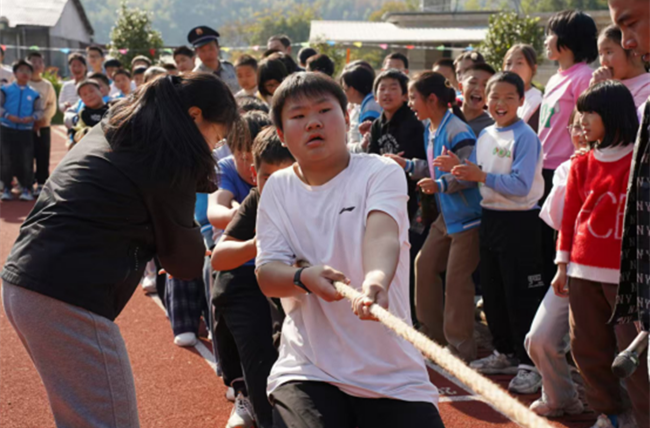50米跑赛道上,选手们如离弦之箭,飞奔向前;立定二级蛙跳沙池里,运动员们纵身一跃,在空中划出优美弧线;跳绳区域,彩绳飞舞,选手们身轻如燕……每一位运动员都全力以赴,为了班级荣誉和个人梦想奋力拼搏。压轴大戏拔河比赛将气氛推向高潮。15人战队紧握绳索,脚蹬地、身后仰,红绸带在两队间来回摇摆。啦啦队挥舞彩旗,用创意口号为选手助威,最终603班凭借默契配合夺冠,整个操场变成欢乐的海洋。