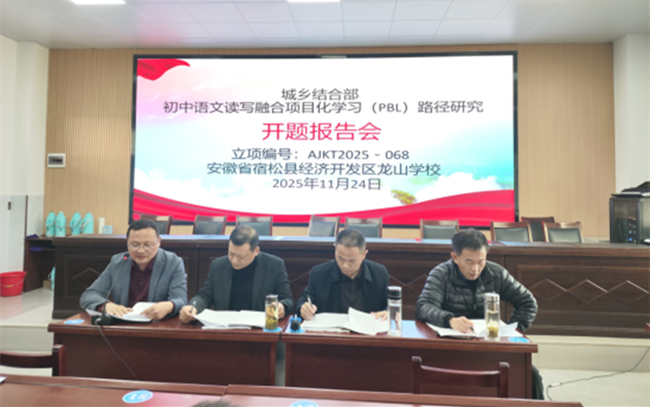 11月24日,宿松县市级教育科学规划研究课题集中开题会在城关初中举行。龙山学校申报的《城乡结合部初中语文读写融合项目化学习(PBL)适配性路径研究》(立项编号:AJKT2025-068)成功立项并顺利开题,宿松县教育局教研室领导欧阳明、朱旭南,城关初中副校长、特级教师季正宏莅临指导,课题组全体人员参加会议。
