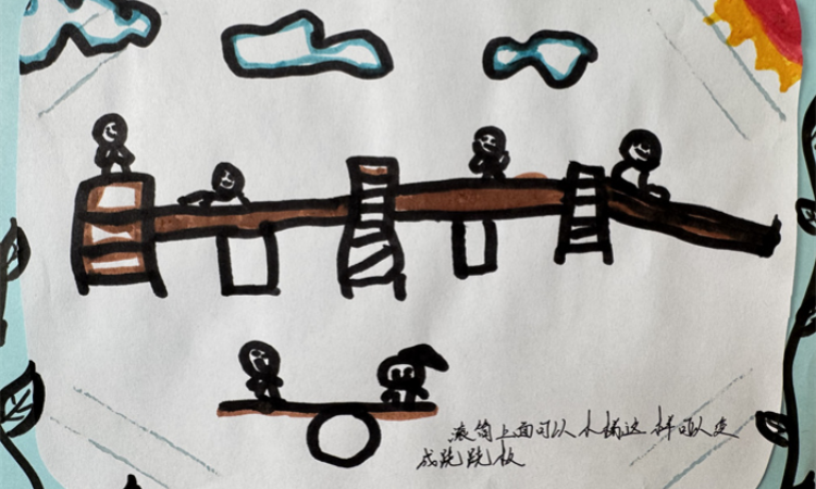 关于从安吉梯上滑下来会被滚筒挡住,孩子们经过讨论和思考进行了位置调整,将滚筒和安吉梯空出距离,这样就不会挡住下来的路线。