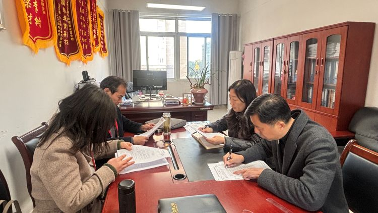 随后,督学组走进教师办公室,随机抽查教师手写教案及“一科一辅”使用情况。督学们认真翻阅教案,对教师备课的细致认真、环节完整、书写规范表示充分肯定,并重点核查教辅材料是否严格执行“一科一辅”要求。经查,学校教辅使用规范,未发现违规征订或变相推销等行为。