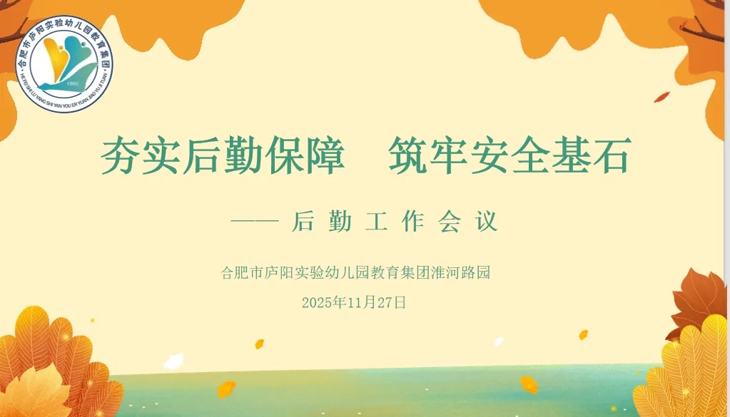 为进一步提升园所后勤服务的精细化、规范化水平,夯实幼儿园安全工作的基石。2025年11月27日,合肥市庐阳实验幼儿园教育集团淮河路园召开全体后勤工作人员会议。