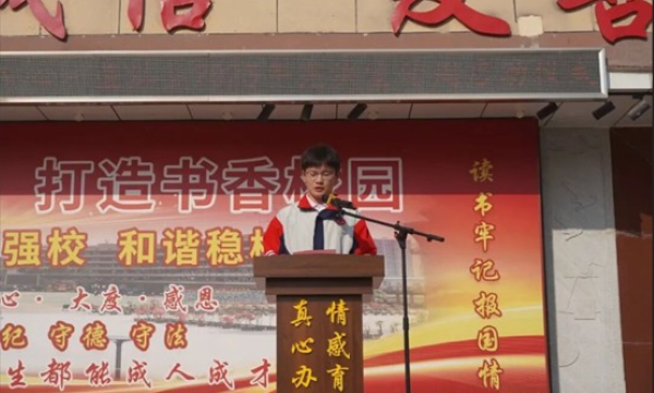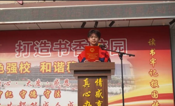 学生代表、高一年级2班徐浩阳分享了学习感悟:“曾经以为宪法离我们很遥远,直到深入学习才明白,它赋予我们平等的受教育权,守护着每个人的人格尊严,更明确了我们作为公民的责任与担当。”他倡议全体同学: