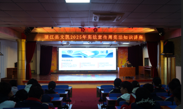 为大力弘扬宪法精神,12月1日,望江县2025年宪法宣传周启动仪式暨升国旗爱国主义教育活动在文凯学校隆重举行。活动由文凯学校执行校长余海海主持。县人大、县委政法委、县法院、县检察院、县公安局、县司法局和教育局等部门领导出席,文凯学校全体师生参加。