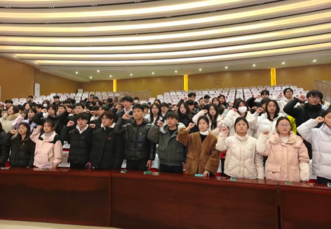 仪式最后,全体人员起立,齐声高唱团歌《光荣啊,中国共产主义青年团》。激昂的旋律点燃了青年学生的奋斗激情。此次入团仪式不仅为学校共青团注入新鲜血液,更让新团员接受了深刻的思想洗礼。相信新团员们将以此次入团为契机,不负韶华、不负时代,在青春赛道上奋力奔跑,为学校发展和祖国建设贡献青春力量。(图文:黄梦洁)