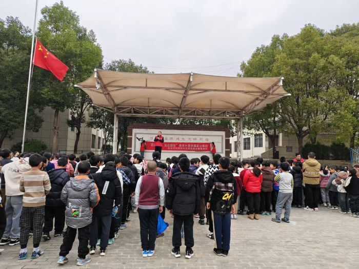 12月12日,学校再次聚焦主题教育,校长胡益亲自为全体学生讲述南京大屠杀那段屈辱而沉重的历史,通过鲜活的史实、真挚的话语,让学生深刻感悟战争的残酷与和平的珍贵,懂得今日幸福生活的来之不易。活动中,学校特别邀请罗汉山革命根据地纪念馆负责人朱留安到校,为学生讲授红色思政课,朱留安结合罗汉山革命根据地的奋斗历程,生动讲述革命先辈浴血奋战、保家卫国的英雄故事,让学生在红色故事中汲取精神力量,厚植家国情怀。