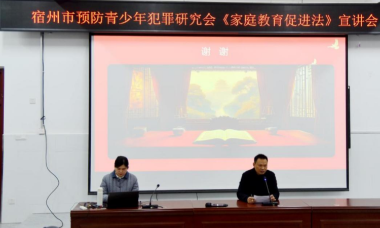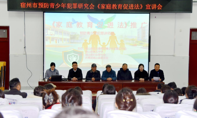为了提高广大学生家长的法治意识,加强学生的家庭教育,预防未成年人违法犯罪,12月12日上午,宿州市预防青少年犯罪研究会《家庭教育促进法》宣讲会在砀山县第五中学举行,提升了家长对青少年犯罪预防的认识与重视,进一步加强家校共育,共同守护学生健康成长。