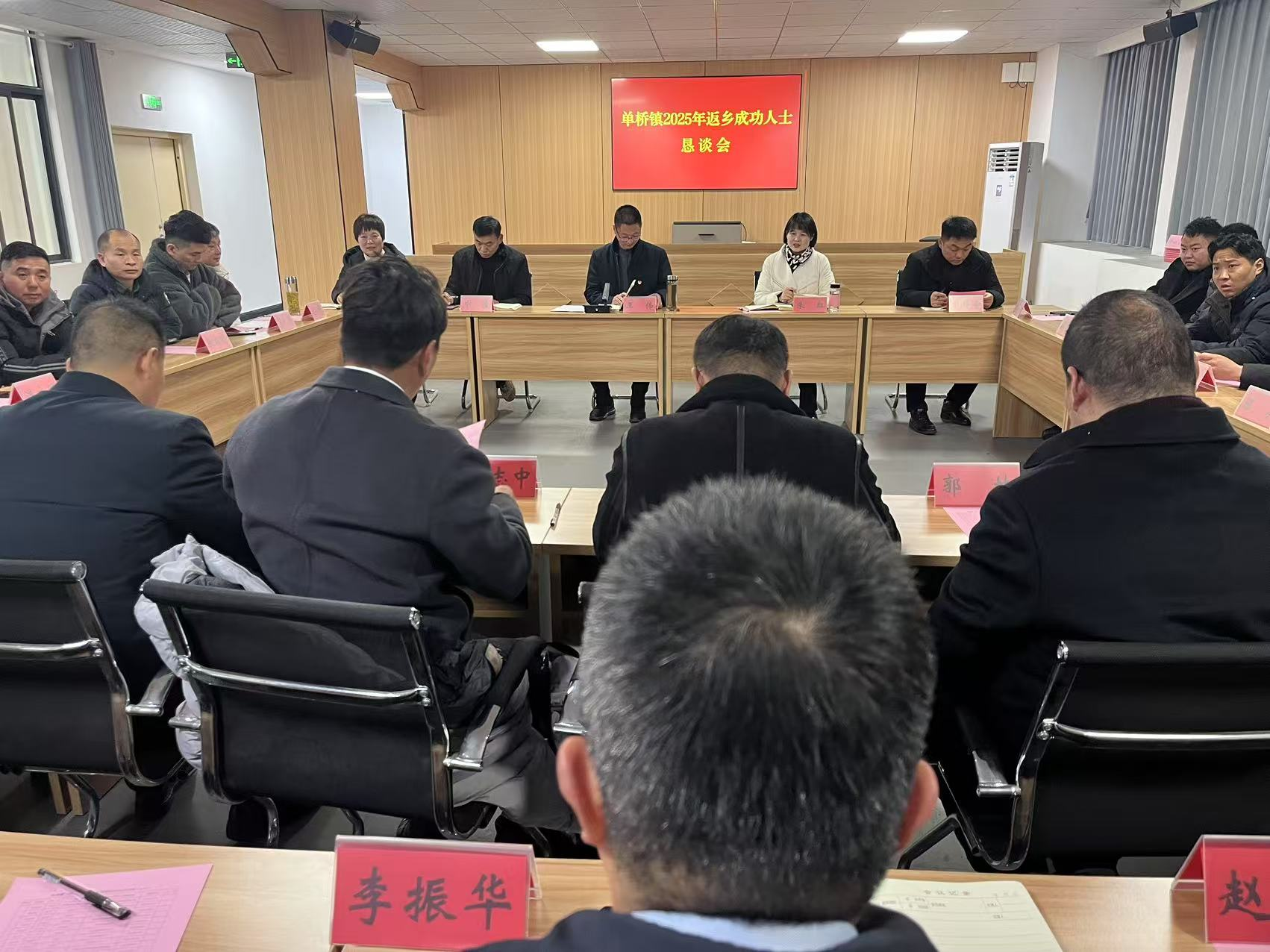 近日,单桥镇在镇便民服务中心三楼会议室召开单桥镇2025年返乡成功人士恳谈会。本次会议邀请了30余位在外创业、工作的单桥镇籍返乡成功人士参会,单桥镇党委书记王伟、镇长朱红等领导班子成员出席会议。会议由王伟主持。
