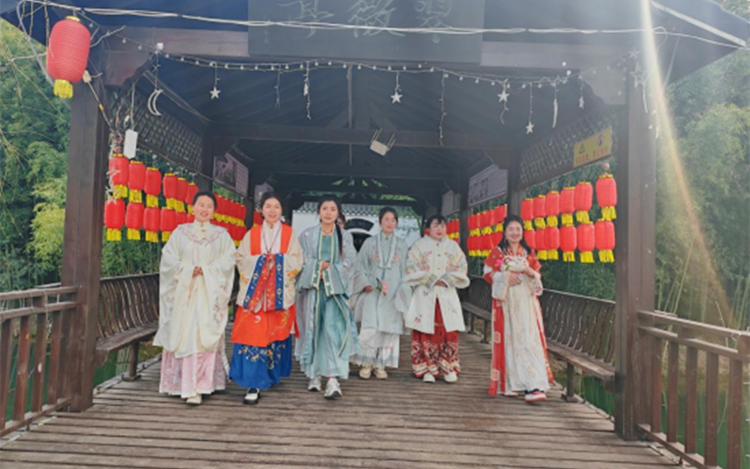 此次活动以汉服文化为载体,通过专业妆造、巡游体验以及手工制作等形式纪念专属于女同胞们的节日。活动吸引镇上女职工代表及其家属参与,他们身着精美的汉服,穿梭于孟村幽寂的竹林之间,或轻盈飘逸,或庄重典雅,或撑一把油纸伞,或执一把团扇,汉服霓裳之美与古朴竹园相映成趣,让人仿若穿越千年、梦回古代。尽显新时代女性魅力,展现了传统文化的深厚底蕴。在竹林的映衬下,古典服饰与现代风采相得益彰,成为一道亮丽风景。