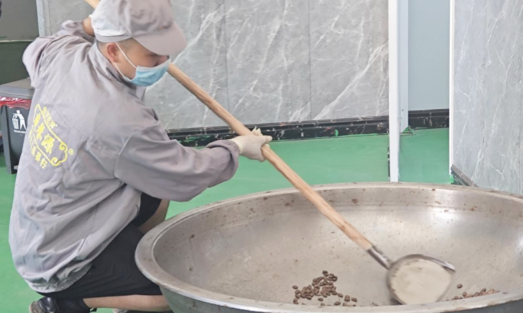 午后日头正烈,连柏油路都蒸腾着热气。唐氏炒货的工厂里,第四代传承人唐盛东正热情地向我们展示着他们独特的炒货技艺。汗水浸透了蓝灰色的工作服,他抡起大铁铲在锅里翻搅,脸上不见疲惫,却洋溢着憨厚而真诚的笑。