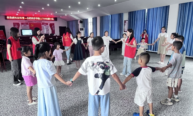 “牛儿还在山坡吃草,放牛的却不知哪儿去了……”7月8日上午,休宁县月潭湖镇回溪村的托管课堂里,20余名留守儿童围坐成圈,跟着合肥经济学院的志愿者轻声哼唱《歌唱二小放牛郎》。歌声里,10岁的小雨一边拍手打节奏,一边盯着志愿者手中的漫画——画面上,小英雄王二小正牵着牛,把敌人引向八路军的埋伏圈。这是回溪村暑期托管特色课程的生动一幕。