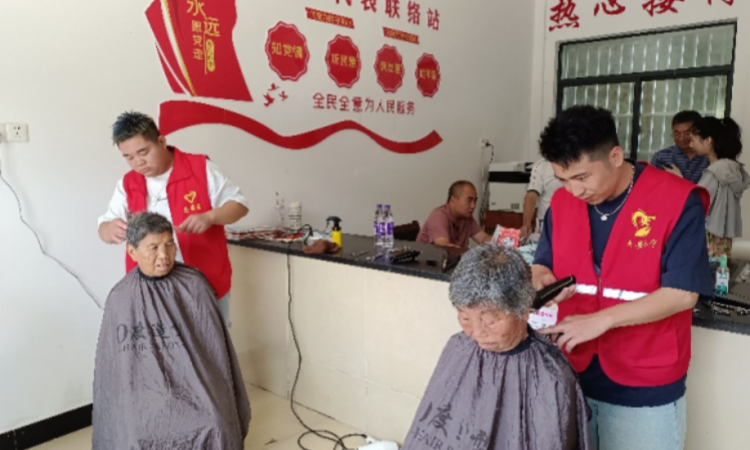 志愿者们提前把红网议事厅布置成小型理发店,理发师们也携带工具早早到场,前来参与的村民众多。理发师们耐心询问每位村民的发型需求,旁边的村民也不时凑过来夸赞新发型,志愿者们给等待的老人递上泡好的茶,再一起唠唠家常,排队的队伍里满是欢声笑语。活动临近尾声,志愿者们拎上工具箱来到行动不便的老人家中,为他们提供上门服务,同时,借着服务的间隙,收集民情民意,为后续提供便民服务、解决问题打下基础。