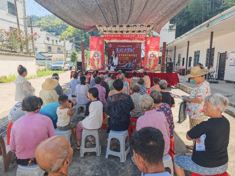 安徽省文化惠民工程“送戏进万村”活动每年给每个村送一场戏曲,主要以群众喜闻乐见的黄梅戏,2025年送戏进万村活动主要是以《马前泼水》《陶金玉招亲》《孝子状元》等黄梅戏为主,月潭湖镇6场吸引了1000余名戏曲爱好者前往观看,此次演出以戏曲的形式讲解日常生活中的相处之道,让观众在观看戏曲演出的过程中不仅感受到传统文化的魅力,更重要的是弘扬传承孝道、礼让等美德的重要性。