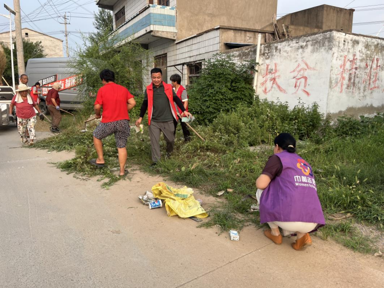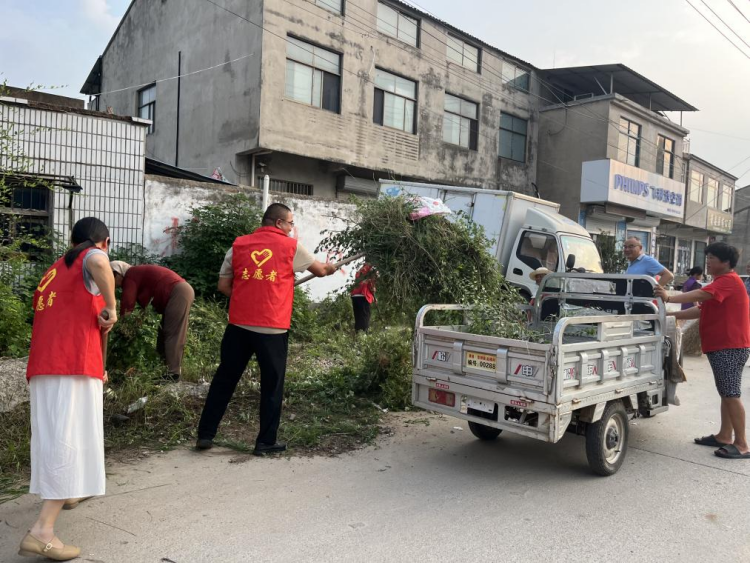 赵楼村志愿者清理道路两边的杂草、垃圾
