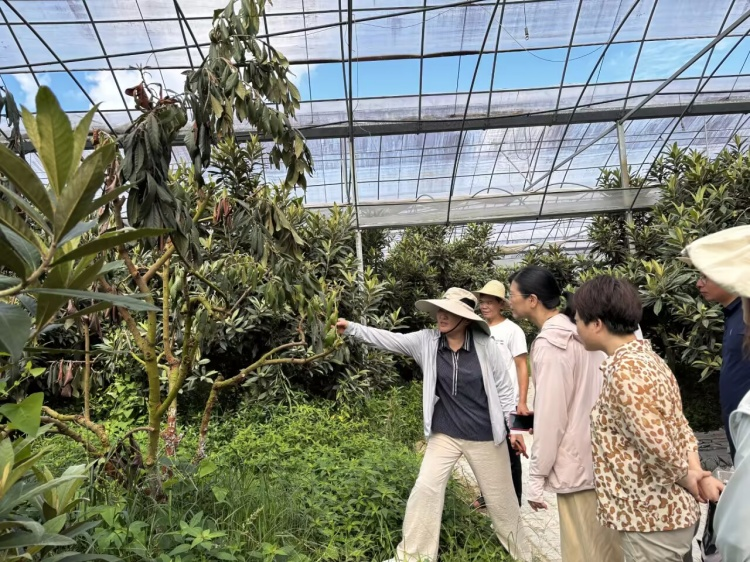 调研组“第一站”来到定潭村枇杷大棚基地,实地考察大棚枇杷生长情况,针对果树生长实际,与果农开展大棚日常管理、果树栽培情况的交流,认真记录下果农们在种植过程中遇到的技术难题和实际需求,并现场给予针对性指导建议。