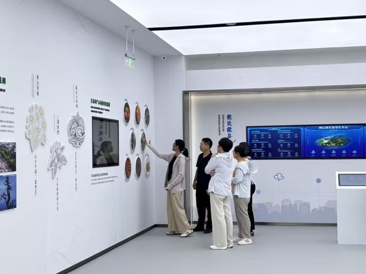 随后,调研组来到深渡镇“两山转化”行知人才学院项目点,伴随讲解员的讲解,通过馆内声光电技术呈现的新安江流域历史与当下实景对比,生动展现了歙县各级政府如何借鉴新安江流域治理的历史经验,因地制宜制定生态补偿机制、发展生态旅游、推动绿色产业等一系列新发展政策,让两岸人民生活更加美好,实现“绿水青山”向“金山银山”的转化。