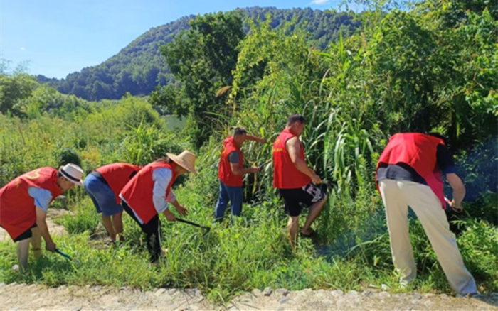 近日,黄山区新华乡董家湾村党总支用实际行动践行生态守护使命!党员志愿者们身着亮眼红马甲,带着镰刀、铲子等工具,早早集结奔赴太平湖沿岸董家湾村段,一场清除“生态杀手”的志愿行动火热展开。