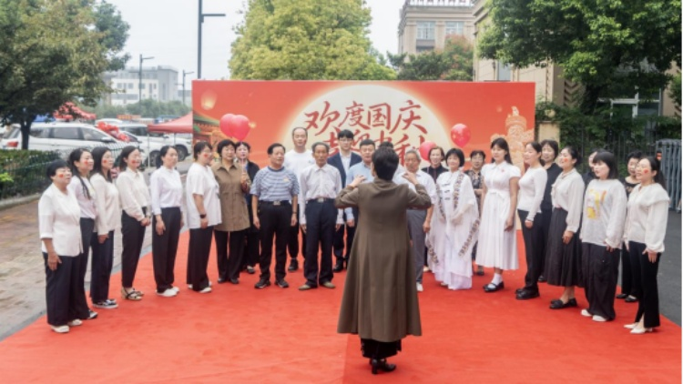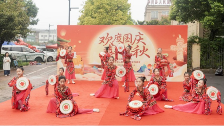 活动正式开始前,居民们便陆续来到签到处,将一句句饱含深情的祝福献给祖国。这份浓浓的家国情怀,很快就在随后拉开帷幕的文艺汇演中得到了热情的延续与释放。由社区文艺爱好者自编自导的合唱、舞蹈、戏曲、乐器演奏等节目轮番登场,现场气氛热烈。一曲《没有共产党就没有新中国》的大合唱,唱出了大家对祖国的无限热爱与深切祝福;舞蹈《楚声鼓鼓》则舞出了新时代的精神风貌。舞台虽小,却真情洋溢,掌声此起彼伏,每一个节目都赢得了现场观众的阵阵喝彩,也将国庆的喜庆氛围一次次推向高潮。