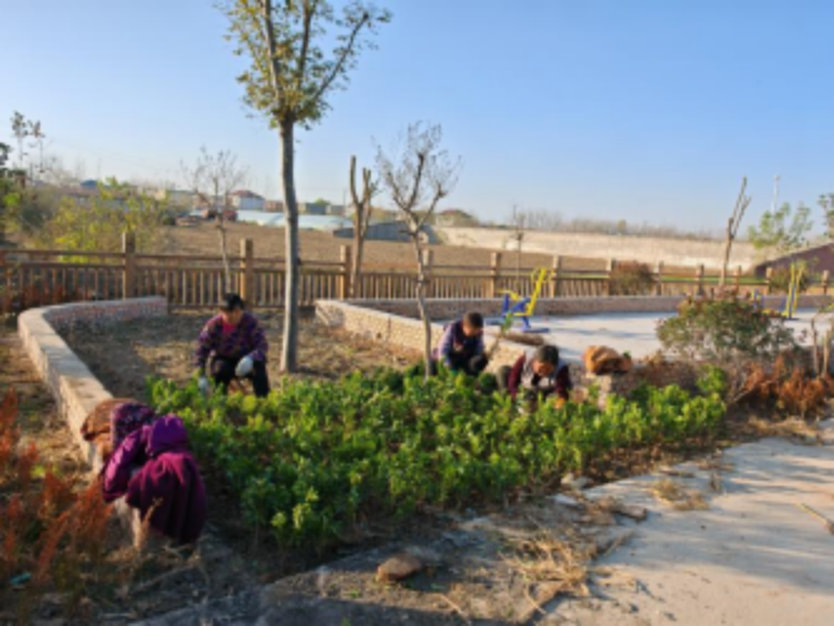 闲置地块的“植绿行动”也在有条不紊进行中。镇村干部与村民共同规划,将村内荒置的边角地、广场周边打造成绿化景观带。“干部帮咱找苗源、定方案,咱出力气把地种好!” 村民李婶拎着水壶,小心翼翼地给刚栽下的绿苗浇水。培土挖坑、扶苗定植、浇水养护,曾经的“废弃地”在众人手中焕发新生。文化广场旁,新种绿植嫩绿的枝叶在风中摇曳,为村庄增添了一抹亮色,也为村民们打造了休闲休憩的好去处。