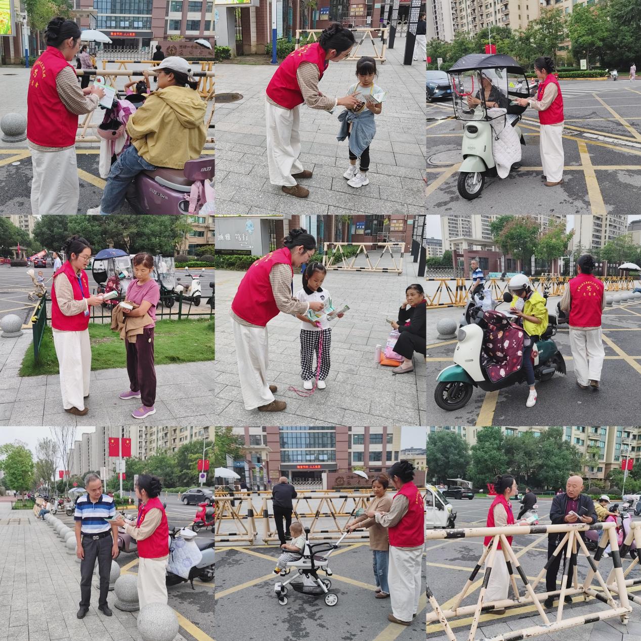(图为社区工作人员向学生和学生家长发放宣传手册)