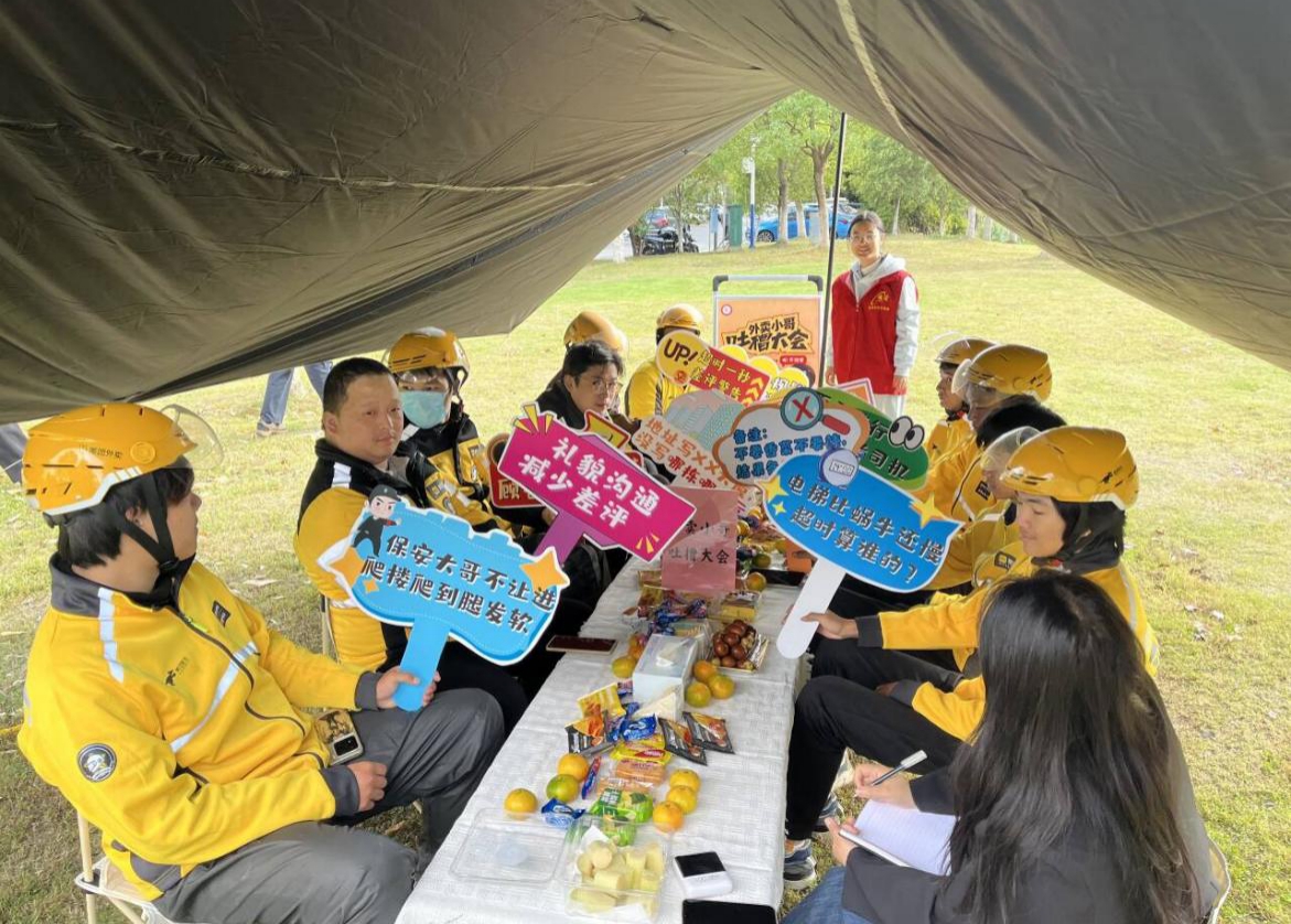 红歌传唱润人心,凝聚群体归属感。除心声交流外,现场还增设唱红歌环节。当经典旋律响起,骑手们纷纷跟唱,熟悉的曲调不仅舒缓了连日奔波的疲惫,更让红色精神浸润人心。“唱完感觉心里特别敞亮,也更觉得自己是社区的一份子。” 一位骑手的感慨,道出了活动对增强群体身份认同与归属感的积极作用。