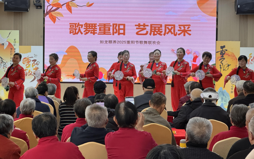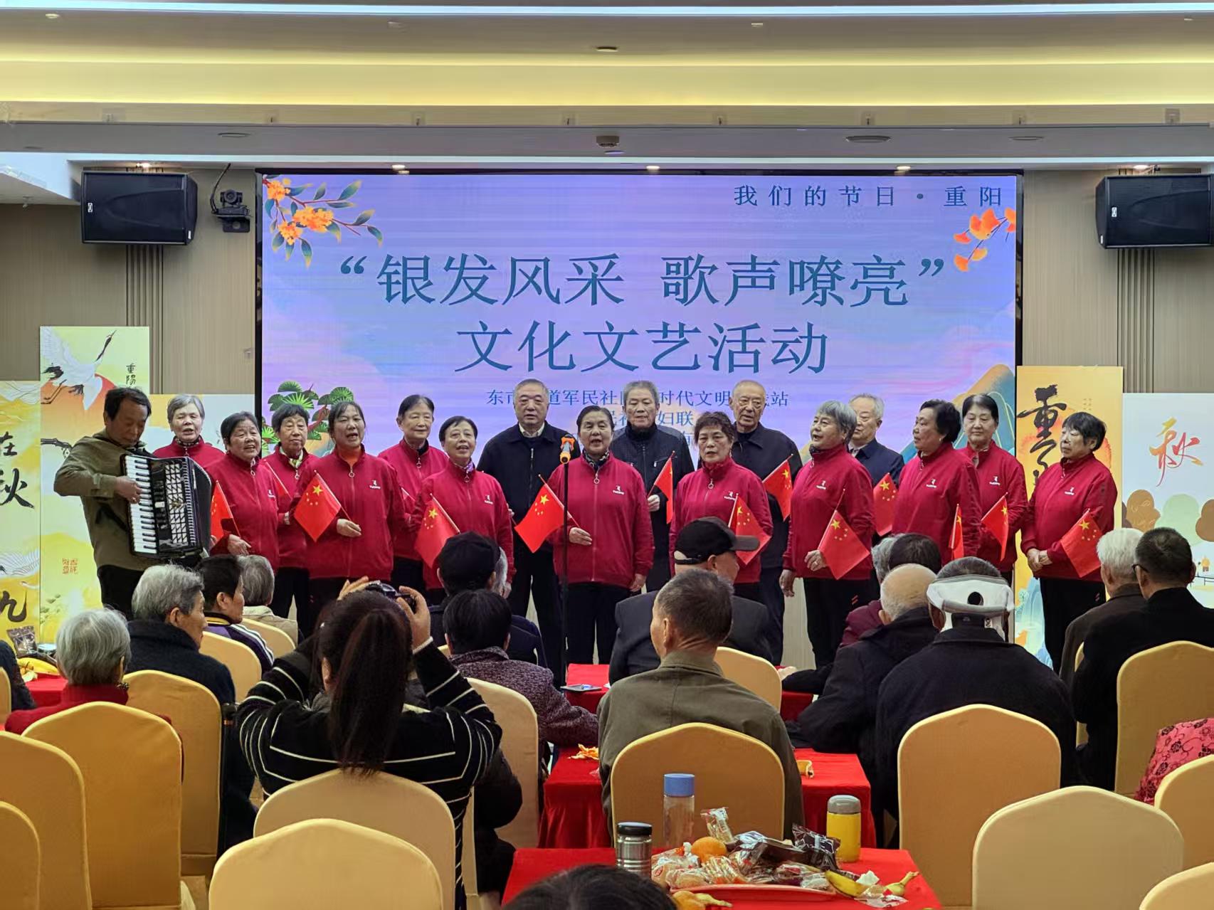 金秋送爽,丹桂飘香。为弘扬中华民族尊老、敬老、爱老、助老的传统美德,丰富辖区老年朋友的精神文化生活,在重阳节来临之际,六安东市街道军民社区新时代文明实践站精心组织,带领辖区“银龄学堂”的学员们走进如龙颐养,联合开展了以“歌舞重阳、歌声嘹亮”为主题的文化文艺活动,为长者们送上了一场精彩的文化盛宴和节日的诚挚祝福。