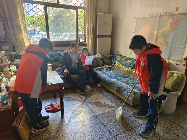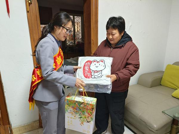 活动现场暖意融融,义诊服务率先拉开序幕。来自市中医院的多名医护人员耐心接待每一位前来咨询的老人,细致为大家测量血压、血糖,针对常见慢性病的预防、用药规范等问题答疑解惑,同时结合老人身体状况给出个性化健康指导,叮嘱日常饮食与运动注意事项,用专业服务守护老人健康。另一边,关爱同步进行时,一群活泼可爱的小朋友化身“爱心小使者”,在社区志愿者和银行工作人员的带领下,来到辖区独居老人家中。孩子们干劲十足,认真打扫房间、擦拭家具、整理杂物,还围在老人身边听他们讲过去的故事,用稚嫩的声音送上节日祝福,小小的身影忙碌穿梭,为老人的家中增添了欢声笑语,并为他们送上大米等慰问品,传递社区的牵挂与祝福,让老人在节日里不孤单。