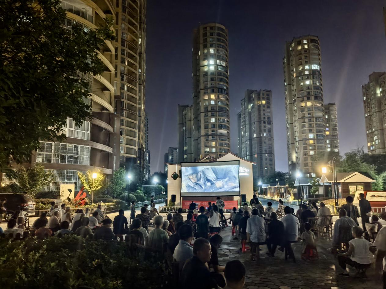 傍晚时分,社区广场灯火通明,由寿春华府小区党支部牵头搭建的“茶棚露天影院”热闹起来。放映前,党员志愿者摆放座椅、调试设备,并贴心准备热水和驱蚊贴;影片放映时,老人们围坐在一起,跟着熟悉的剧情轻声讨论,偶尔哼起经典台词,回忆涌上心头。“小时候跟着大人挤在村口看电影,没想到现在在社区又能重温这份热闹!”76岁的王爷爷一边擦着眼角,一边和身边的老邻居分享感受。社区已开展露天电影放映15场次,覆盖老年人1400余人次,让红色记忆与邻里温情在光影中传递。