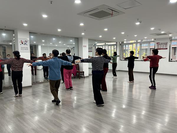 本期活动特邀具有多年教学经验的张老师担任指导。活动流程设置充分考量老年人身体特点,以“基础入门+兴趣培养”为主线。活动现场,张老师从最基础的站姿、呼吸方法开始教学,逐步引入民族舞《茉莉花》的八个基础动作组合。通过“分解演示-分组练习-个别指导-集体展示”四步教学法,确保每位学员都能跟上教学进度。“老师教得特别细致,每个动作都反复示范,还手把手纠正我的姿势。”68岁的退休职工王阿姨欣喜地表示,“没想到在这个年纪还能学会跳舞,感觉身体更灵活了,心情也变得更好了。”
