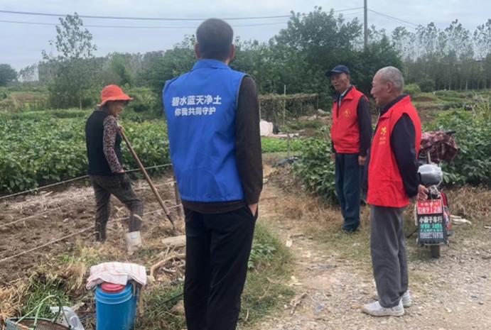 (图为党员和“五老”志愿者巡查大阳垾湿地公园和众耕园)