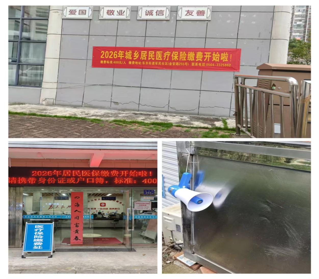 “各位居民,2026年度城乡居民医保开始缴费啦……”在军民社区,熟悉的“小喇叭”声音准时在各小区楼栋间响起。针对辖区内不会使用智能手机、信息接收不畅的老年人群体,社区不仅悬挂了数十条醒目的宣传横幅,更重启了“小喇叭”这一传统却高效的方式,将参保时间、缴费标准等关键信息用最直接的方式传递到居民耳边,确保医保宣传无死角、全覆盖。此外,社区工作人员还在各居民微信群推送医保政策解读、缴费流程指南,形成了“空中地面”相结合的宣传矩阵,营造了“主动参保、积极续保”的浓厚氛围。