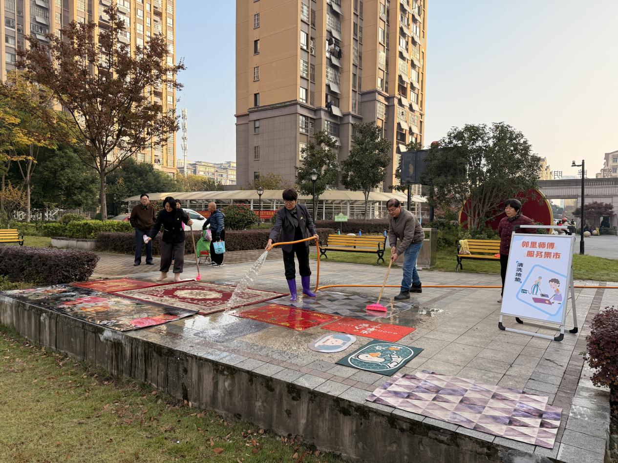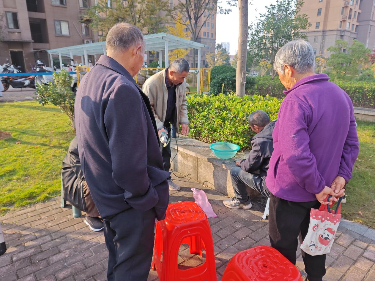 活动现场,服务集市人气十足,各项服务精准对接居民日常需求。健康义诊区为居民提供免费血压测量与健康咨询;爱心义剪区的志愿者们手艺娴熟,让居民们焕发新颜;传统的磨刀、洗地毯服务前排起了长队,师傅们的精湛手艺解决了大家的“老大难”问题。同步开展的反诈宣传与医保收缴摊位也吸引了居民驻足,志愿者们通过发放资料、现场答疑等方式,切实为居民筑牢安全与健康“双防线”,赢得了居民们的频频点赞。