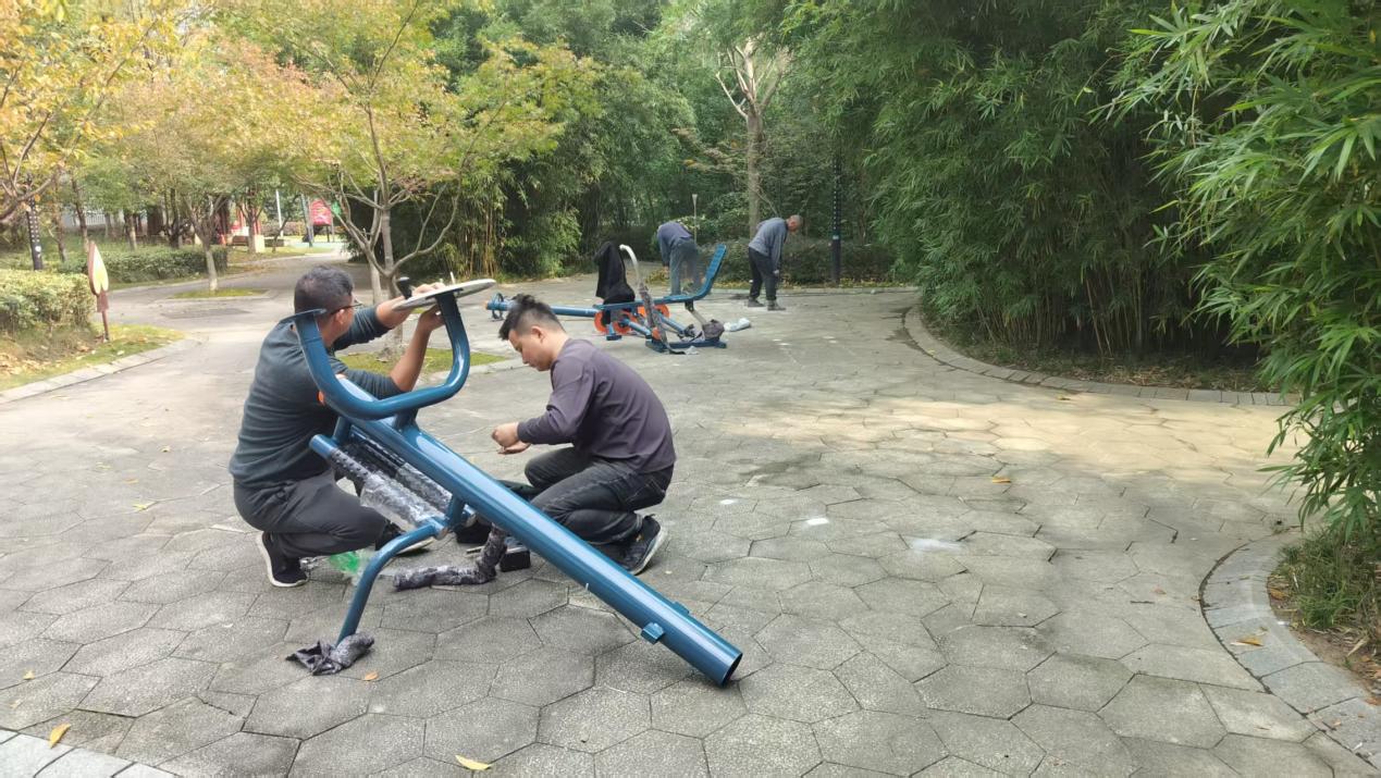 精准“开方”,破解健身“梗阻锁”。针对小区健身器材老旧损坏问题,区数管局主动对接相关部门,邀请专业人员现场指导器材选型与安装技术标准,确保施工科学规范。截至目前,一期、二期小区已拆除老旧器材10余件,新安装各类健身器材一组12件,涵盖有氧运动、力量训练、柔韧性训练等多种类型,满足不同年龄段居民的健身需求。同时,为保障居民使用安全,数管局还督促施工方在器材周边铺设防滑地砖,设置安全警示标识,并安排专人进行质量验收。