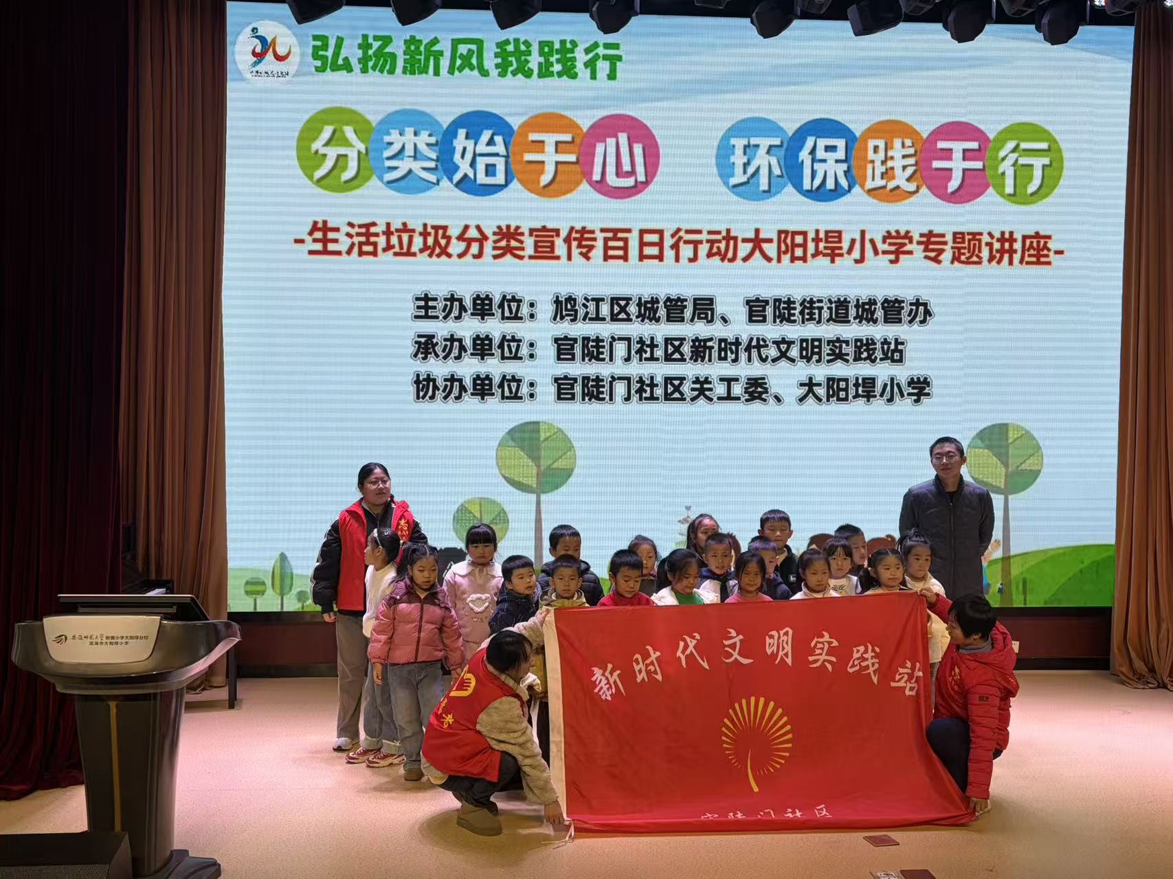 为进一步普及垃圾分类知识,引导学校垃圾分类从娃娃抓起的生态环保思想,树立学生绿色环保理念,养成垃圾分类的良好习惯,推动垃圾分类理念在校园落地生根。11月18日下午,由区局、街道牵头,芜湖官陡门社区新时代文明实践站协办联合关工委组成的宣讲团,走进大阳垾小学报告厅,为学生带来了一场生动有趣的垃圾分类主题宣教课。