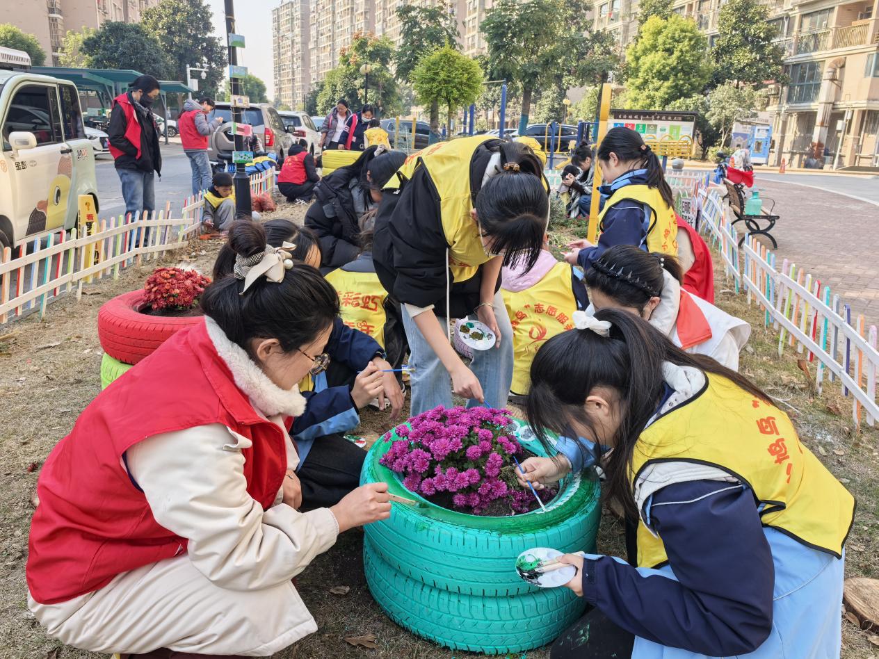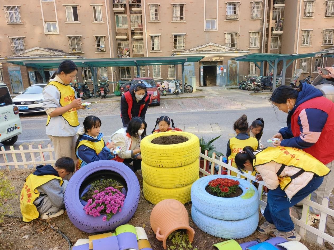 在芜湖鸠江区“鸠地共治”党建引领城市基层治理微创新“红鸠领航,童植未来”红色传承项目与鸠江区“五社联动”创新基层治理服务项目的大力支持下,2025年11月21日,芜湖鸠兹社区新时代文明实践站、鸠兹社区关心下一代工作委员会、芜湖市新希望社会工作服务中心联合鸠兹彩虹“小鸠鸟”志愿队、“五晖同盟”志愿者团队,在社区共享花园举办了“童心绘梦,亲子同创”共享花园美化行动,孩子们与家长共同执笔,将废弃的轮胎与瓦片变为承载梦想的斑斓画布,为社区注入满满的童真与温情。