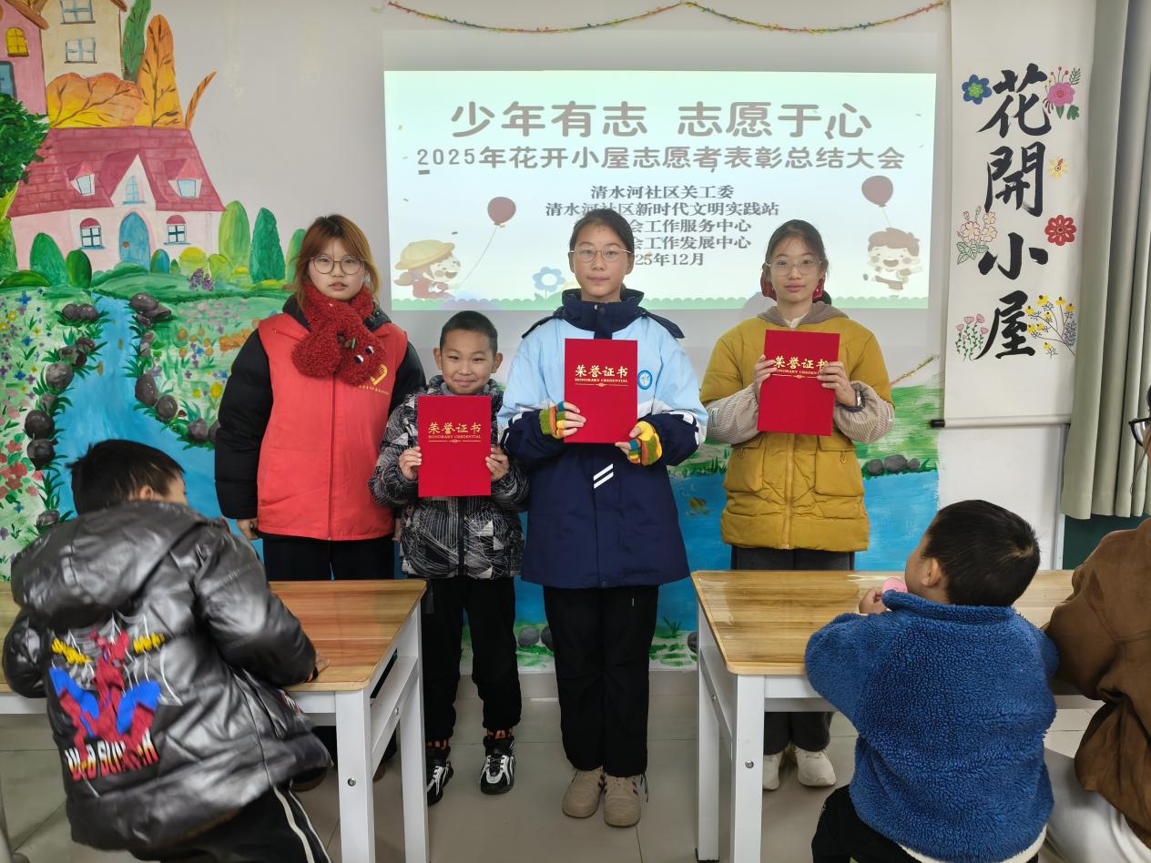 秒针跃动:志愿活力汇聚温情滴答。志愿者如活跃不停的秒针,构成社区最鲜活的脉搏。在专业引领下,“清姐妹”“小花朵”等队伍高频、细腻地投入服务,参与日常运营、陪伴阅读、协助手工、入户走访。每一次付出,都是社区时钟里温暖的“滴答”。在近期“少年有志 志愿于心”年度总结表彰大会上,社工依据服务时长与质量评选出“成长之星”“奉献之星”等,表彰骨干与新人的付出。这不仅是对成果的展示,更是对志愿文化的培育——让奉献被看见、被尊重,持续激发志愿热情,凝聚成推动社区正向循环的可持续力量。