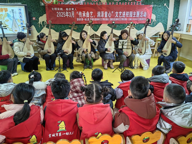 市场星报、安徽财经网(www.ahcaijing.com)、掌中安徽讯(郭靖靖曹开发)为弘扬弘扬艺术精神,传承戏曲文化,提升音乐审美和文化素养,2025年3月5日上午,宣城市鳌峰街道宝城社区新时代文明实践站联合宣城市第一幼儿园以“传承曲艺·润泽童心”文艺进校园为主题开展琵琶弹唱活动。