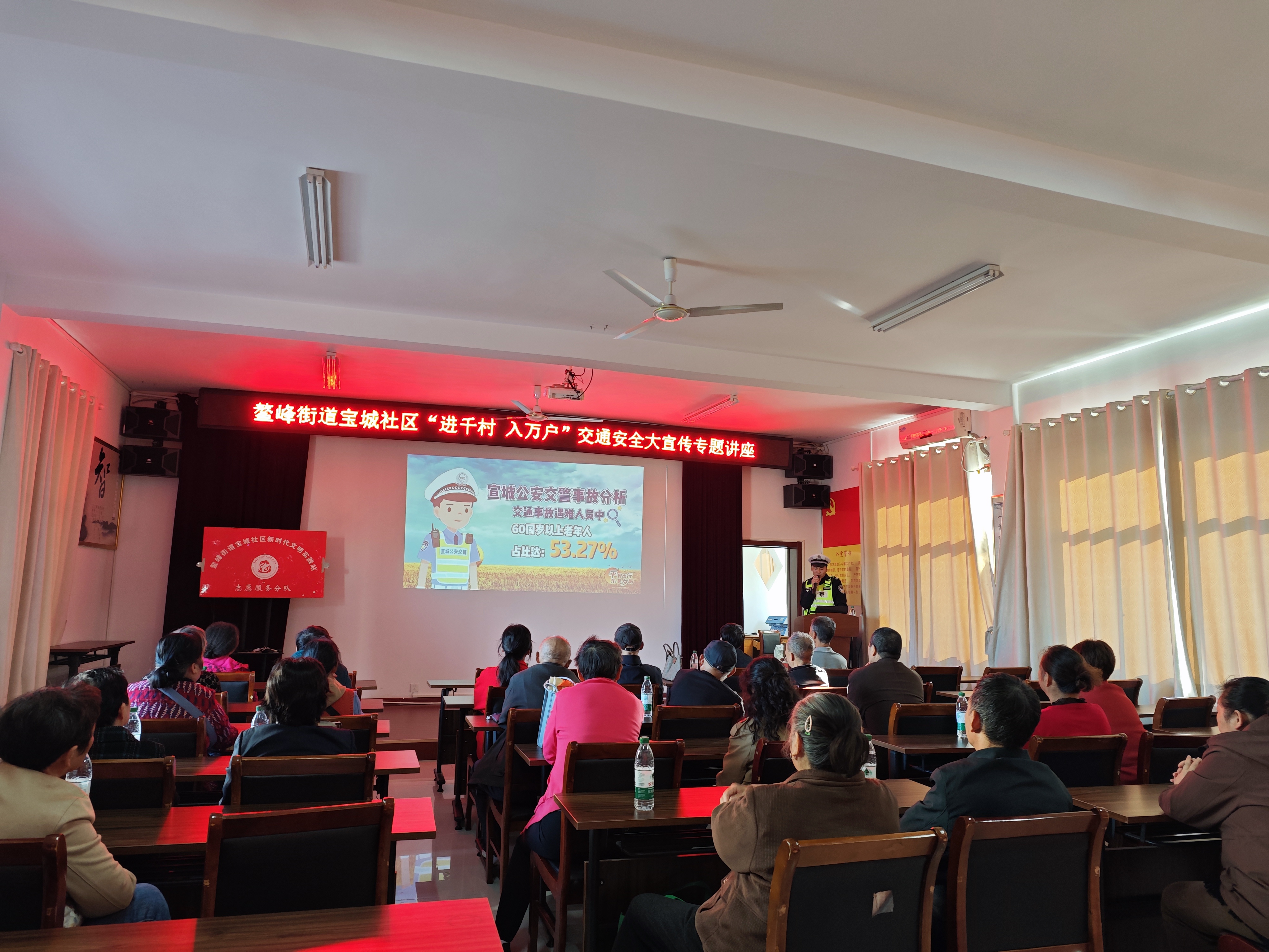 市场星报、安徽财经网(www.ahcaijing.com)、掌中安徽讯(杨雯慧 曹开发)为提升社区居民交通安全意识,有效预防道路交通事故,宣州区交警大队走进宣城市鳌峰街道宝城社区开展交通安全大宣防系列活动,为社区居民送上实用的交通安全知识“大餐”。